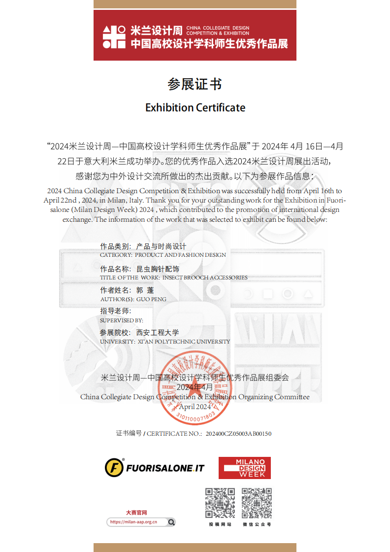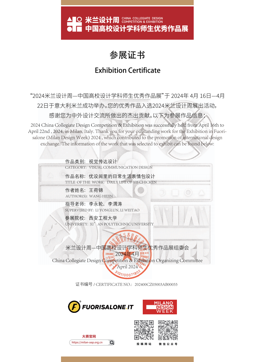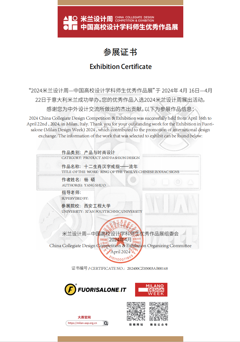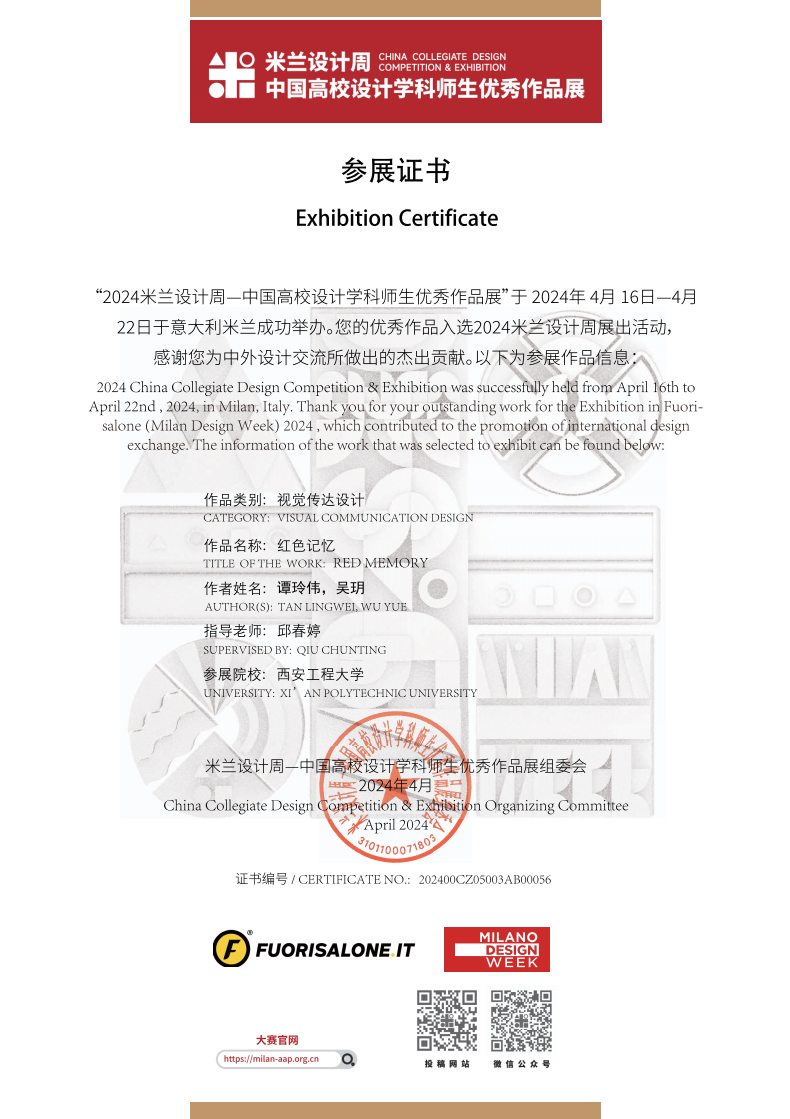 展览位于国际艺术中心米兰最繁华的地区——米兰主教堂所在的古城区附近,米兰著名的历史宫殿Durini宫,也是米兰国际艺术中心的主展馆所在。本次精选赴米兰设计周参展的展览作品由全国 29 个分赛区从第五至第七届国赛一等奖作品中,推荐具有代表性的优秀作品参展,涵盖视觉传达设计、产品设计、时尚设计、环境空间设计和数字媒体设计等多个类别。