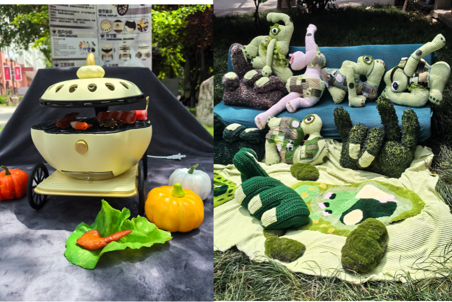 本次毕业设计的主题为“定义美好”,环境装饰艺术设计和产品造型设计两个方向的师生通力合作,试图将抽象理念融入日常生活。导师们引导学生从设计学、文学、生态学、社会学等多学科视角出发,通过“传统文化”、“自然意象”到“生活美学”的艺术思维路径,提出了众多意犹未尽的“美好定义”,实现了传统文化与生活美学的创新性转化。展览展出了产品设计专业两个方向共103位同学的400余件(幅)作品,这些作品在13位专业教师的指导下完成,覆盖了室内软装饰、公共空间装置、纤维艺术、拼布艺术、智能交互产品、户外装备以及特殊人群专用设施等多个领域。多样化的作品旨在拓宽人们对产品设计专业的认知,并激发大家对“美好”的深刻思考。每一件作品都是同学们大学生涯的学习结晶,展现了他们对创意设计和艺工融合的深入思考。这些优秀的设计作品引得师生驻足观赏,成为了初夏校园里一道亮丽的文化风景线。