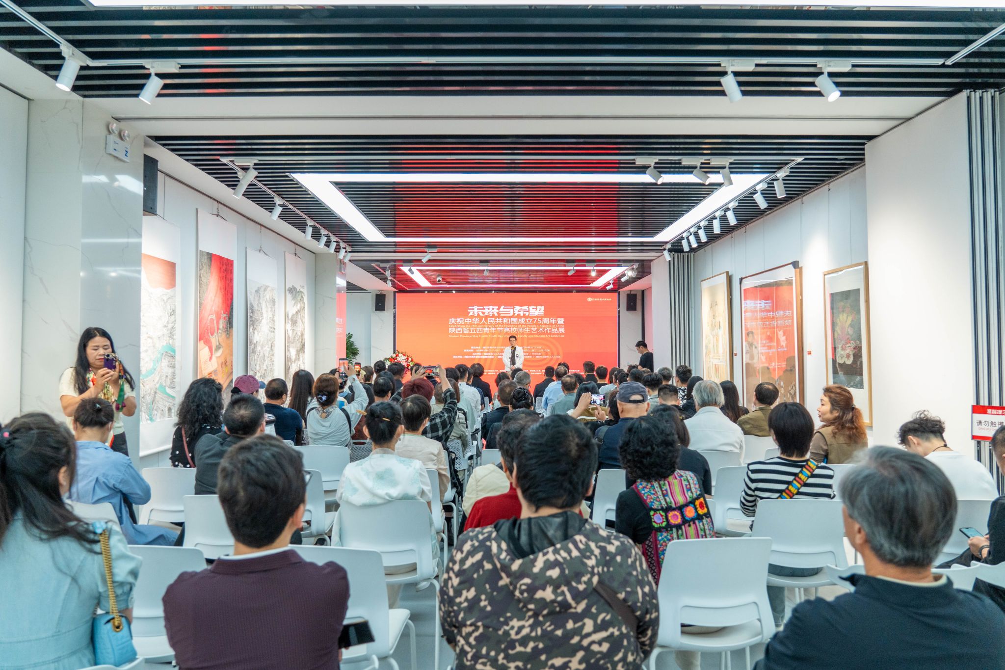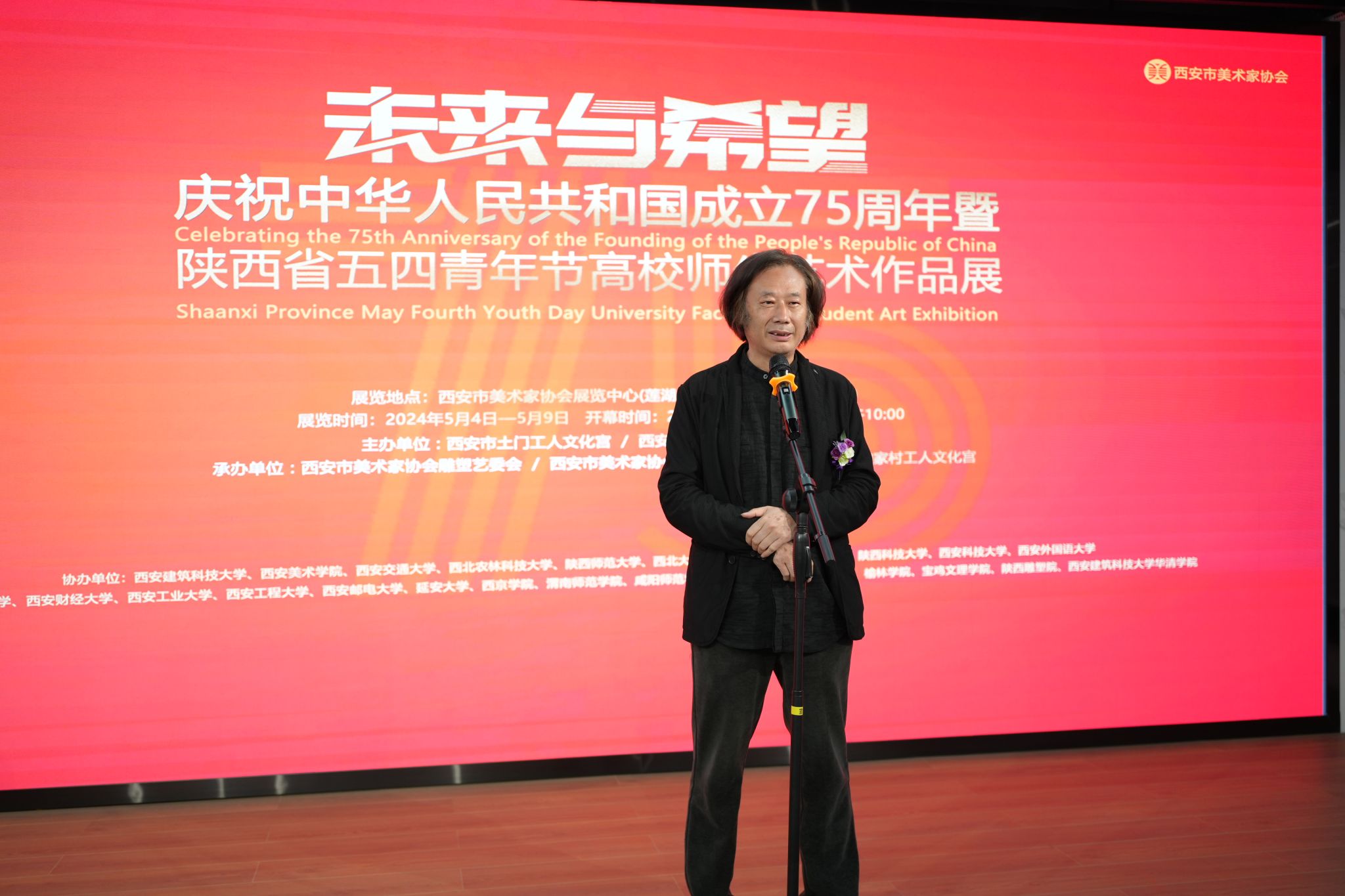 5月7日上午十点,“未来与希望”庆祝中华人民共和国成立七十五周年暨陕西省五四青年节高校师生艺术作品展在西安市美术家协会展览中心展出。陕西省美术家协会副主席蔺宝刚,西安市美术家协会主席杨霜林、西北大学艺术黑料网