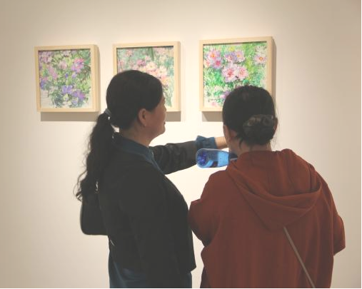 该展展出的每一幅作品,都展现了艺术家对生活和艺术的领悟与表达。杨健健教授将春日生命力用细腻的笔触予以诠释,丰盈的色彩碰撞出繁花景象。温柔、细腻、坚韧与自由,所有生命都有属于自己的频率,光影流转间,使观展者看得见她笔下的万物盛开。