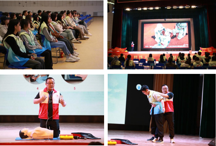 2024年4月9日,急救培训正式开始。首先由宋世君老师为同学们讲解了红十字会的起源及发展历程,并讲解基础急救知识。宋老师通过生动的案例分析,让同学们更加直观地了解了急救知识的实际应用和红十字会的重要作用。随后,宋世君老师进行了实践教学,他为同学们详细讲解了心肺复苏术、AED的使用、海姆利克急救法等常用急救技能,并利用模拟假人进行了现场演示。老师的讲解清晰明了,引起了同学们的浓厚兴趣,同学们上台进行体验,在老师的指导下,同学们不仅巩固了理论知识,还提高了自己的实际操作能力,掌握了正确的急救方式。