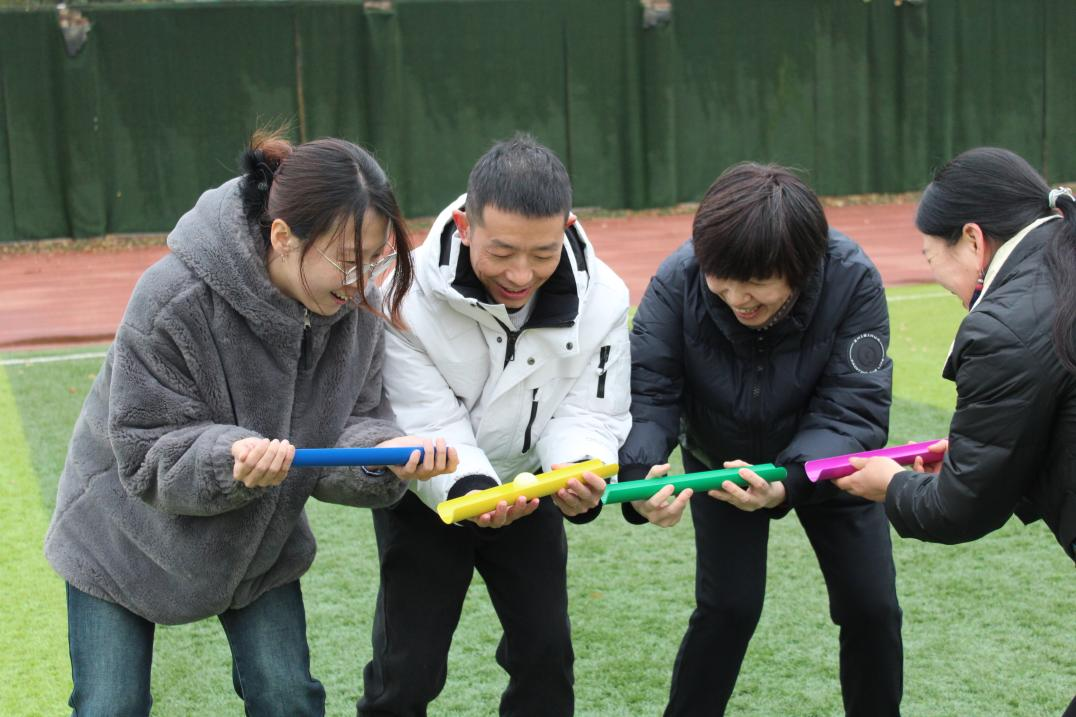 本次师生趣味运动会共设师生联谊篮球赛和趣味游戏两个项目。趣味游戏包括“摸石过河”、“一圈到底”、“能量传输”、“抢菜接力”、“抱球接力”以及“谁踩我气球”等六个趣味游戏,充分体现了趣味性与竞技性的完美结合。在比赛现场,师生们热情高涨,积极参与各项比赛,彰显顽强拼搏的体育精神。在赛场的另一边,是激情对决的师生篮球赛,这既是一场实力的较量,也是一场友谊的见证。师生相互合作、相互鼓励,充分体现团队协作精神,在锻炼身体的同时,也收获了师生情谊。