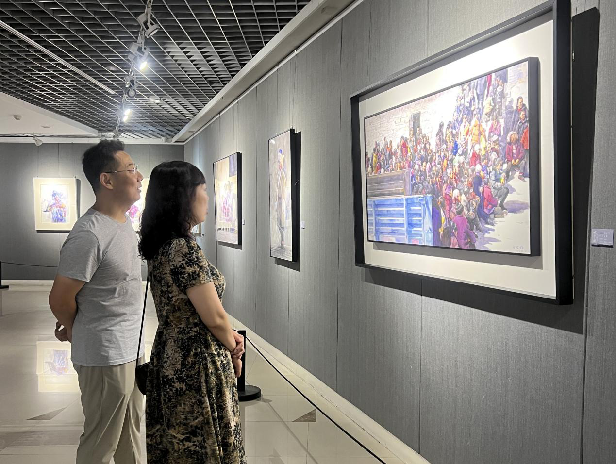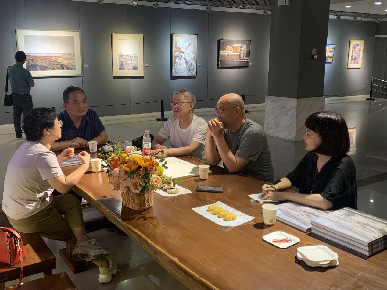 西安美术家协会水彩艺委会副主任陈静、委员宋卫东参观画展