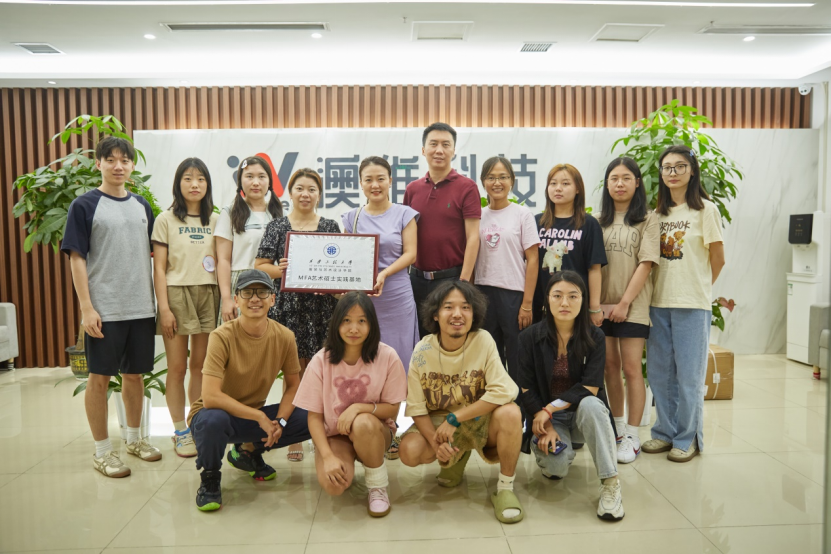 产品设计系教师与澳维科技领导、毕业生校友挂牌合影