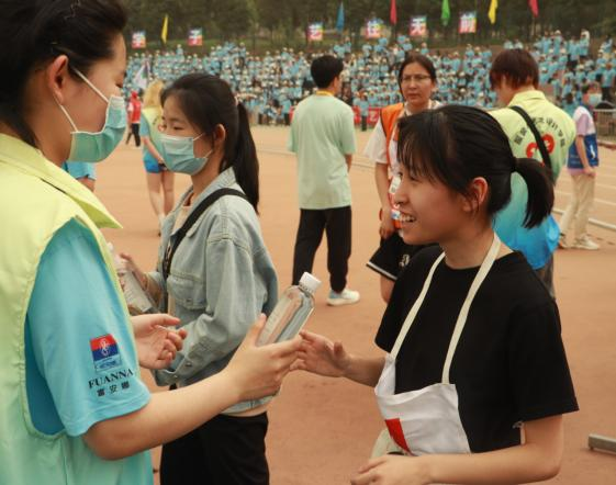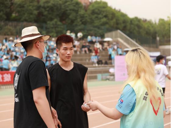 青年志愿者协会特地安排了“运动会急救队队员”。同时,为了确保场地看台的环境卫生,还安排了“运动会环保垃圾纸箱”等志愿服务。在比赛期间,急救志愿者们随时关注运动场上的情况,以最好的状态来应对突发情况。他们耐心细致、准备充分,即使是在沙尘漫天、下雨降温的恶劣天气中也全力做好运动员的志愿服务保障工作,为运动员送水、接送赛场上的运动员、对受轻伤运动员进行紧急救治,让运动员们没有后顾之忧。看台志愿者也各司其职,每半小时围绕看台进行垃圾回收,赛后对看台及时进行整理与打扫。促进比赛圆满完成。