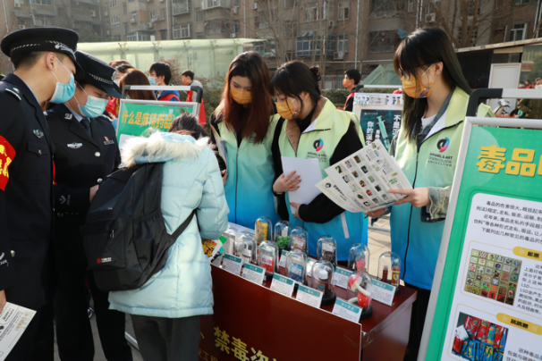 团总支书记马薏雯、副书记孙晨倩对活动进行现场指导。现场的青年志愿者们向来访的领导干部、青少年和群众教授如何辨别新型毒品,科普毒品种类和危害,引导增强识毒、防毒、拒毒的防范意识,宣传党和国家禁毒工作的方针和政策。高歌警官说:“为人民服务是我们的责任,我们很愿意与大学生志愿者一起合作,增强人民禁毒意识,为构建和谐社会共同努力!