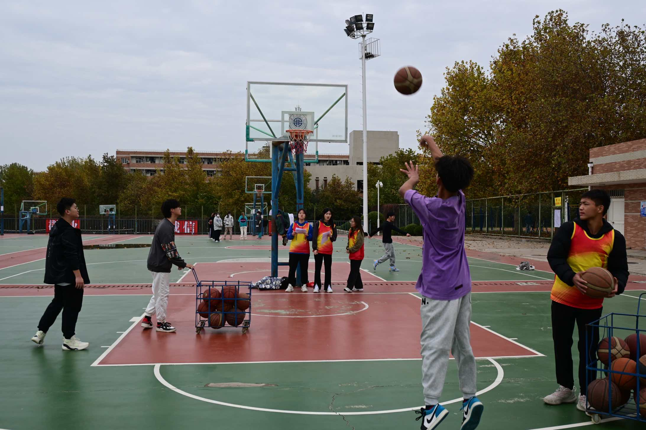 在临潼校区南环篮球场举办了2022级新生篮球挑战赛。此次挑战赛分为女子3V3和男子三分球大赛。每场比赛中的各队球员们都认真地对待,无论是运球、突破、上篮,亦或是抢断、传球、投篮,动作皆是十分娴熟流畅。运动场上一幕幕精彩的瞬间,演绎着学子们青春与热情同在、团结与拼搏并存的精神风貌,展现了服院学子永不服输的运动精神,更让学生们在紧张的学习生活之余放松身心,感受到团队的力量与温暖。