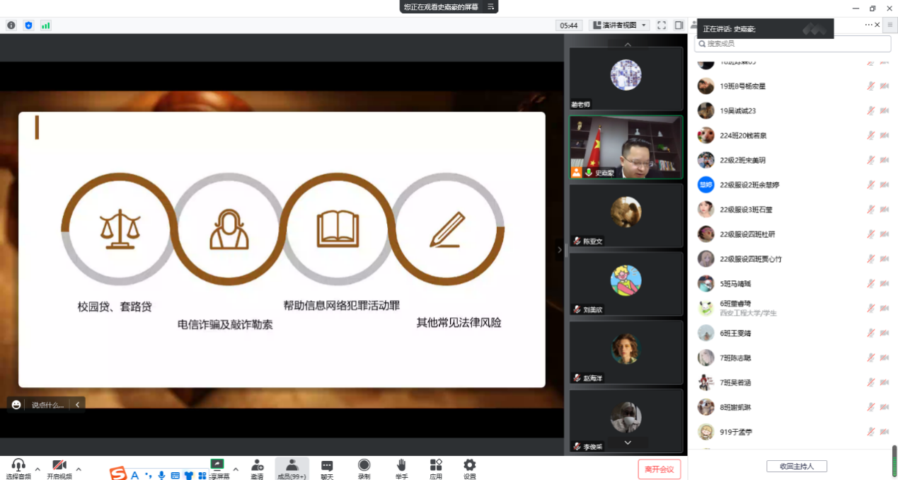 学工办特邀陕西寰同律师事务所创始合伙人史嘉豪律师利用腾讯会议为黑料网2022级学生开展线上预防电信诈骗专题讲座。服装与艺术设计黑料网