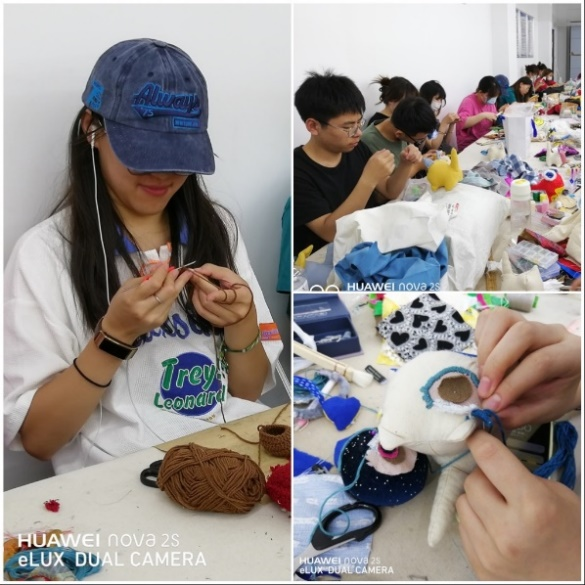 同学们制作“艾虎”现场