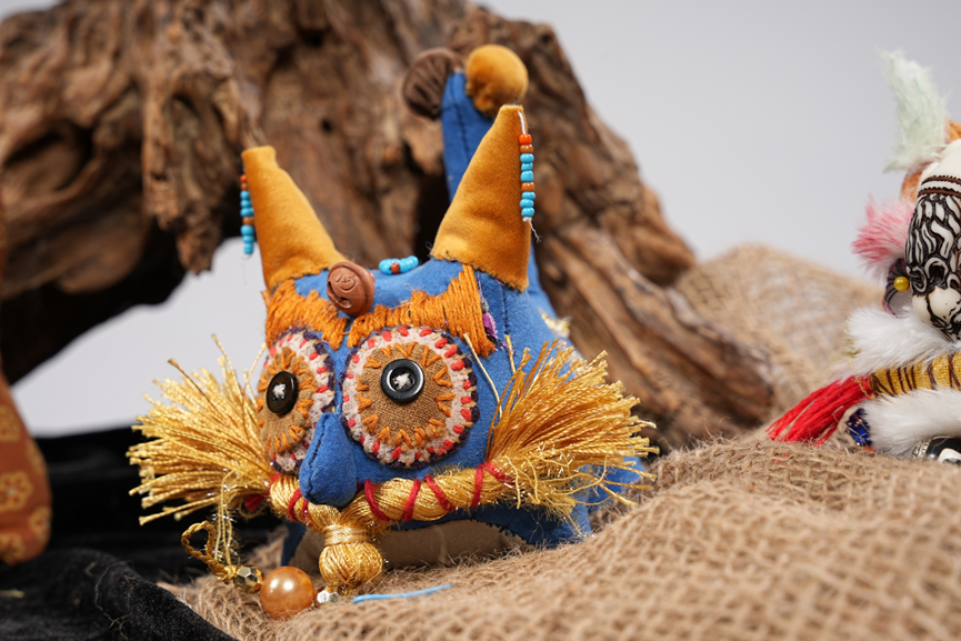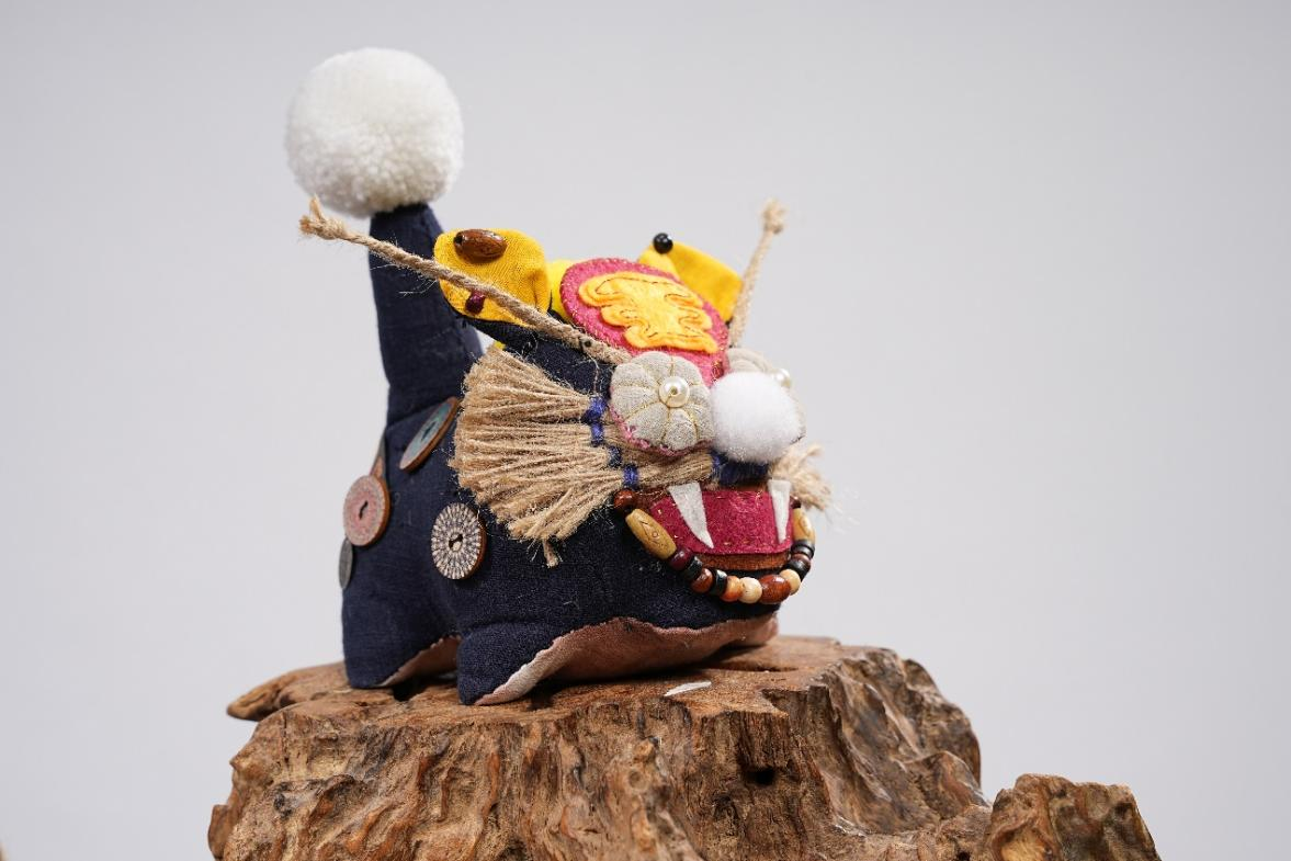 作品说明:艾虎是古代汉族端午节压胜物兼饰物,是中华传统的民族文化。我通过收集非洲部落的文化特征和中华传统文化艾虎相结合,以部落酋长的形象特征附着在艾虎上,提现出中非文化的结合,多民族融合,也体现出中华传统文化的包容性和世界和平的象征。