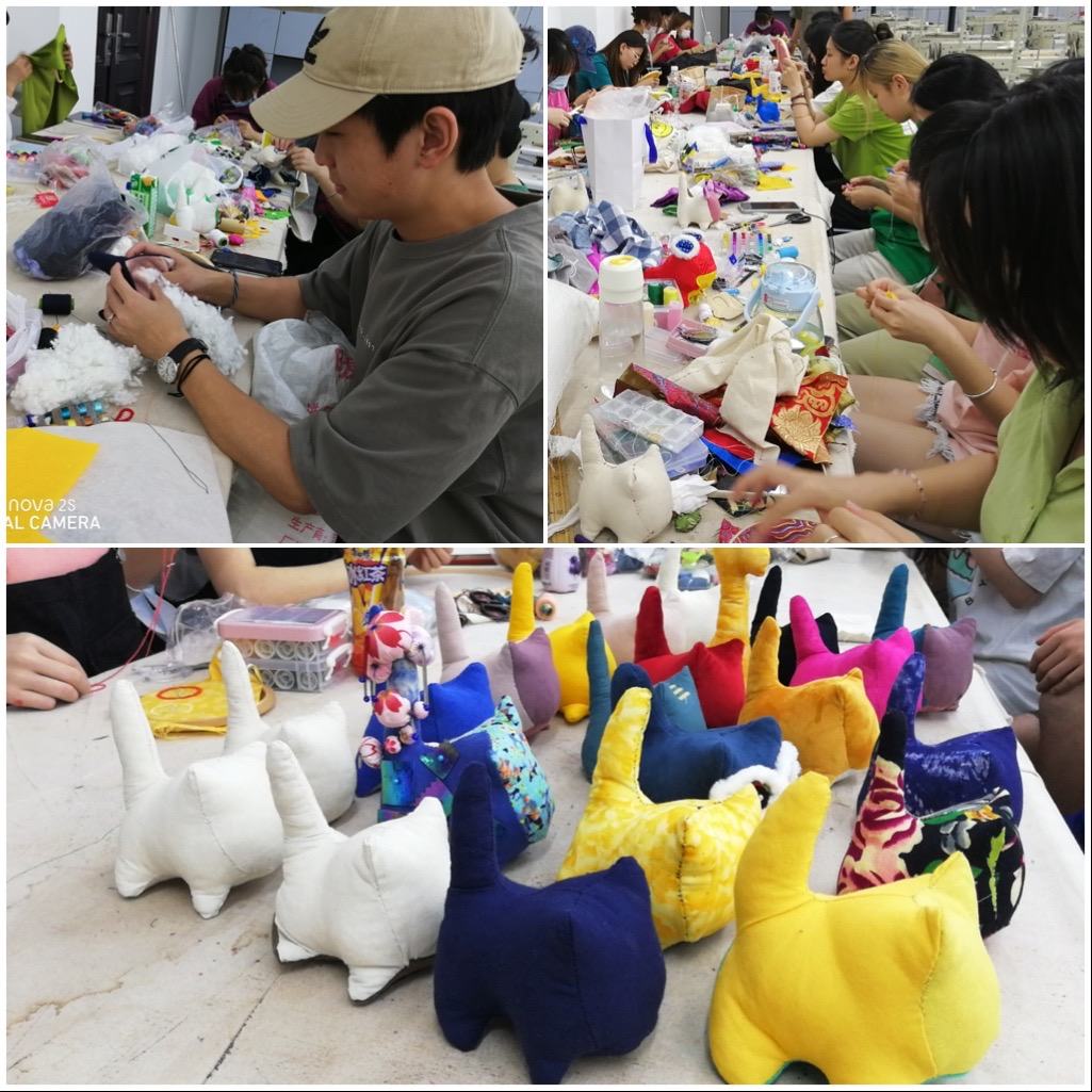 产品设计系20级1、2班在面料造型设计课程上进行了课程成果汇报展示。本次面料造型设计课程引导学生以“艾虎”的主题形象进行面料造型创作,要求学生掌握产品设计环境装饰方向的专业知识,吸收传统布老虎面料造型的制作工艺,了解现代社会的审美风尚,探索装饰性创新技巧更多的可能性。旨在将传统民俗文化引入课堂教学内容,这一教学实践活动意在引导学生在创作实践中了解、吸收民间的手工艺术,激发学生的文化自信与创新意识。课程成果具有一定的文化性、艺术性、装饰性、创新性。
