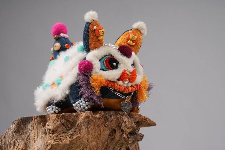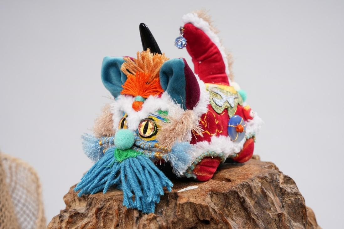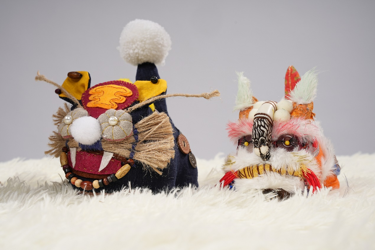 作品说明:老虎的整体感觉就犹如传统的舞狮一般,各种材料之间的碰撞产生不一样的美感,给人一种吉祥活泼的感受。