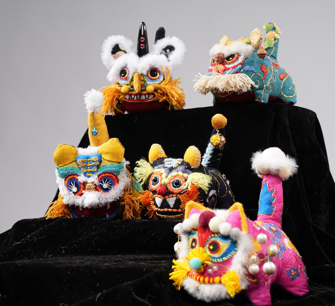 优良传统,立足应用设计,着眼市场需求,注重生活美学,与国内众多纺织行业保有密切合作关系。教学团队注重培养学生的专业基础、创新精神、实践能力、艺术审美。本次课程成果展示了两个班学生创作的近40余只布老虎,既体现了青年人对传统民俗文化的热爱,也展示了学生理论联系实践的能力。展示中的每一只布老虎都凝聚着学生们的智慧与热情,它们形制多样,装饰丰富,工艺技法颇显成熟,较好地体现了学生的专业素养及学习态度。