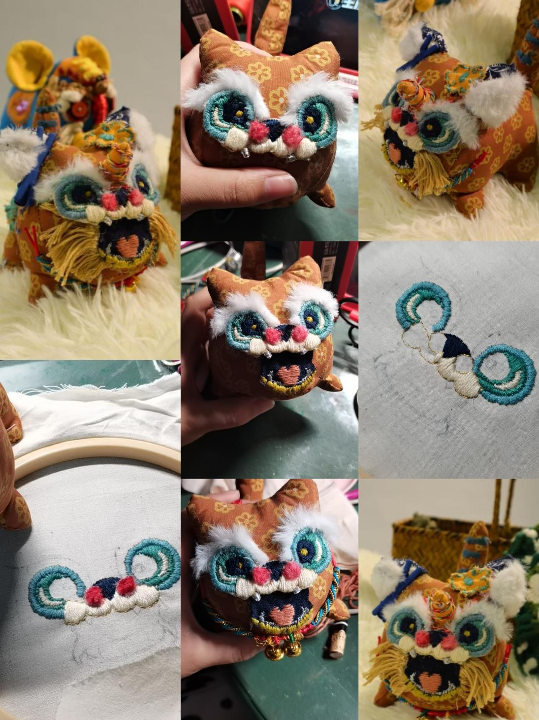 作品说明:虎身由红色组成,锈上传统的图案,和金线组合,给人一种传统的喜庆祥和之感,整体给人一种烈火,生机勃勃的感觉。