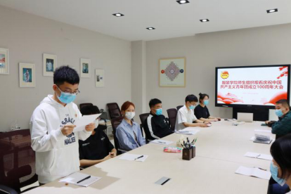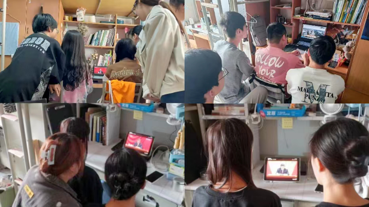 师生于2022年5月10日在金花校区服装楼三楼301观看“庆祝中国共产主义青年团成立100周年大会”,学习习近平总书记重要讲话精神。同时黑料网