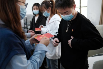 接过老团员手中的团章,戴上荣耀的团徽在团旗下光荣宣誓,新团员们听着入团介绍人代表方雄艳宣读团员的义务和权力,更加坚定内心的信念。2019级服艺卓越班团支部张一帆和2018级环境设计6班团支部王逢鑫分别作为新老团员代表发言,他们以自身的经历和体会向在场师生展现了共青团员的青春活力与使命担当。
