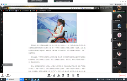 4月29日中午20级视传4班团支部于腾讯会议开展本次主题团日活动,由团支书毛琴介绍团日活动背景,并带领同学们一起观看中国共青团网青年典型的视频,其中青年典型2022冬残奥会轮椅冰壶运动员闫卓的比赛视频让大家感受颇深。闫卓作为一名残疾人运动员,她不甘命运束缚,把压力变成动力,身残志坚,四年备战,不负众望,最终她和队友们在“冰立方”勇夺金牌,赢得了所有人的尊敬和掌声。随后同学们以宿舍小组为单位分别介绍了武大靖、王奔、李春续、李莹等青年人物事迹。他们给予同学们当代青年榜样的力量。参与活动的青年学生黄蕾说:“青年如初春,如朝日,如百卉之萌动,如利刃之新发于硎。我们一定要在这个人生时期努力奋斗,为党和人民奉献青春热血、青春智慧、青春力量。”
