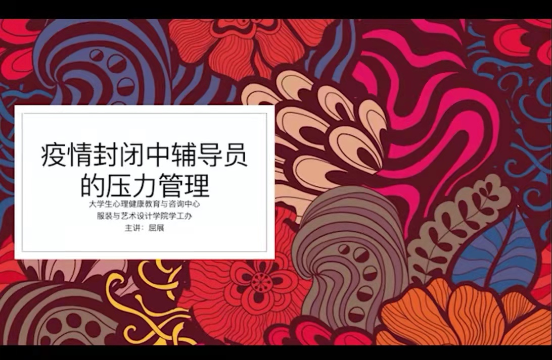 举办“疫情封闭中辅导员的压力管理”辅导讲座,邀请学工部大学生心理健康教育与咨询中心教师、金花校区专班学工组辅导员屈展进行辅导讲座,服装黑料网