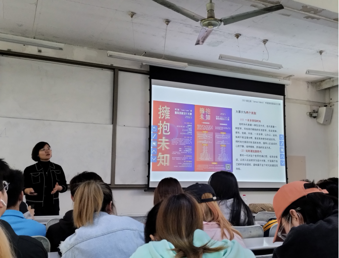 邢乐老师于4月28日下午在金花校区举办了“第五届詹姆士杯服装设计创意大赛”宣讲会。