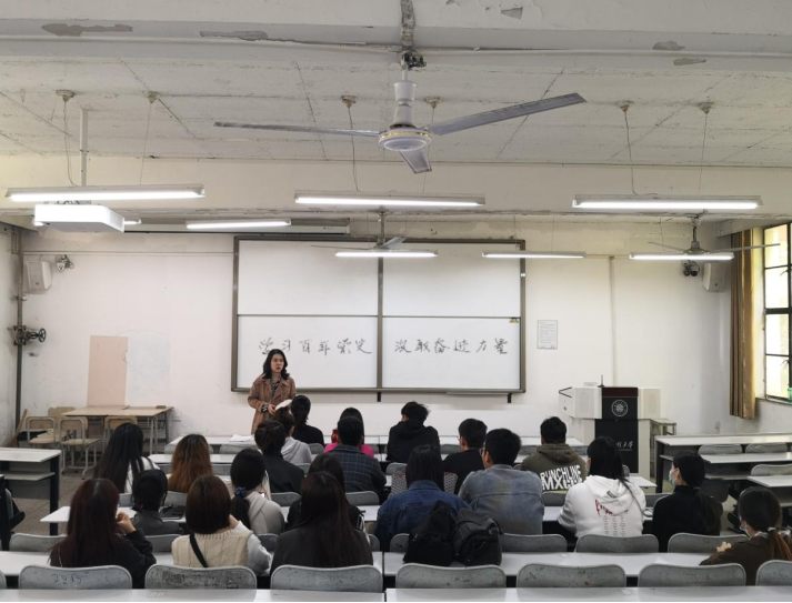 本科生服艺第一党支部全体党员响应号召,以阅读书籍、观看视频、参加专题讲座等多种形式积极学习中国共产党党史、新中国史、改革开放史、社会主义发展史。4月29日上午,为检验学习成果、促进党员交流,本科生服艺第一党支部在金花校区主楼128教室开展了“学习百年党史,汲取奋进力量”党史学习心得交流会。会议由支部书记李涵博主持。