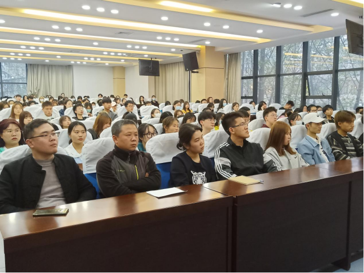 会议伊始,胡得建老师分享了自己在大学期间的学习生活,在校期间,胡老师多次获得国家励志奖学金,也因此萌生创业念头并开始创业征程,旨在回报母校,回馈社会。胡老师接着向大家展示了自己创业十年来所获得的优异成果,分享了自己的创业经验,他从市场价值入手,结合创业实际,对大学生在校生活以及人生规划提出了建议,他指出想要带领一个团队做出好成绩,必须提高自己的个人能力和素养,尤其是要提升自己的规划、学习和执行能力。胡老师建议学生们要学会规划自己的人生,在对自己的产业和产品进行规划的同时,也要重视个人的IP形象,明确自己和企业的定位,以及向社会传播的内容与能量。同时他也提出,并不是每一个人都是适合创业的,所以在决定创业之前要综合考虑自身条件,考虑是否有创业的必要性和可能性,避免盲从。