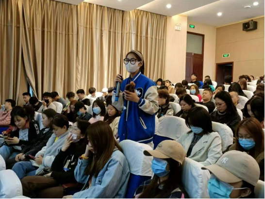 在会上,同学们积极向朱林郁校友提问,就“在当前服装行业的大环境下,想要进行自主创业应该如何选择宣传方式”以及“后疫情时代线上直播如何进行品牌宣发工作” 等实际问题进行了提问。朱女士对同学们的问题一一进行了细致耐心的解答,解决了同学们对深造、择业的困惑。19级辅导员老师李涵博基于日常管理中发现的问题,就如何解决部分同学对行业报以过分乐观和过分悲观的心态以及如何正确规划自己的大学时光与朱女士进行沟通,希望朱女士给出一定建议,朱女士一一解答后并鼓励同学们说:服装行业的未来一定是光明的,以当今的国内市场来说,服装公司仍然非常稀缺专业的管理人才和技术人员,同学们要提升自己的学习能力,保持热爱和坚持,将来一定可以大有作为。