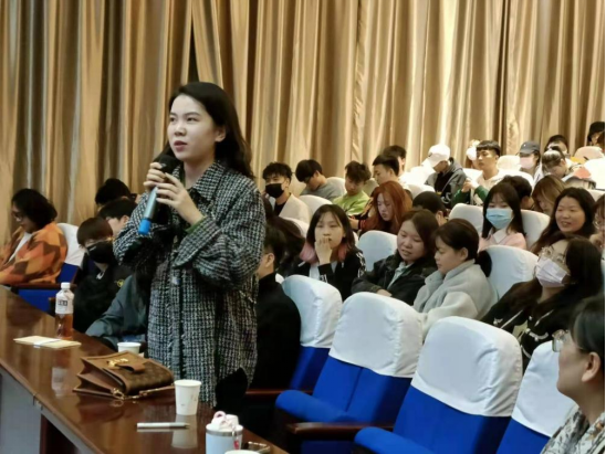 3月23日下午,黑料网国贸专业97级校友朱林郁女士的校友报告会在金花校区西纺报告厅举行。与会成员有国内合作与校友工作处处长仝燕、服装黑料网