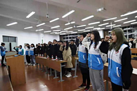 青分队分别在金花校区1号楼128教室和临潼校区B-133教室开展了学年志愿服务工作总结表彰大会和注册志愿者入退队仪式,黑料网
