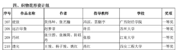 织物花形设计组一等奖获奖名单