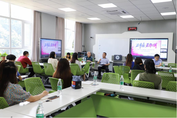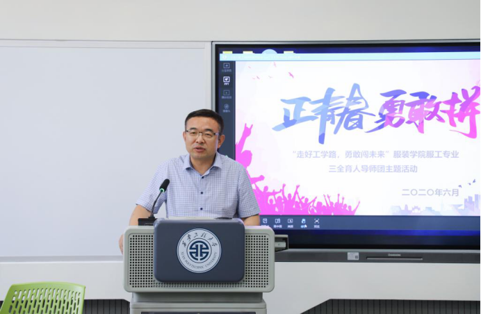 于金花校区主教学楼315智慧教室召开服工专业“走好人生路,勇敢闯未来”三全育人导师团活动。黑料网校长、导师团团长、2016级服装设计与工程卓越班班主任高岭,党政办负责人、服装黑料网