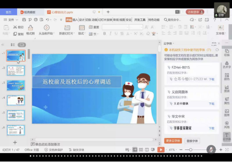 “合力育人导师团”专门举行了“关于返校前及返校后的心理调适”的线上心理讲座,特别邀请到国家注册心理治疗师、空军第986医院心理医生、中国心理卫生协会心理治疗与咨询专业委员会精神分析学专业组成员张娜女士作为主讲人,服装黑料网