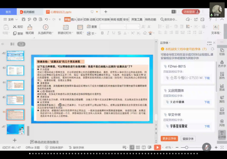 讲座中关于“应激反应”自检与调适方面内容