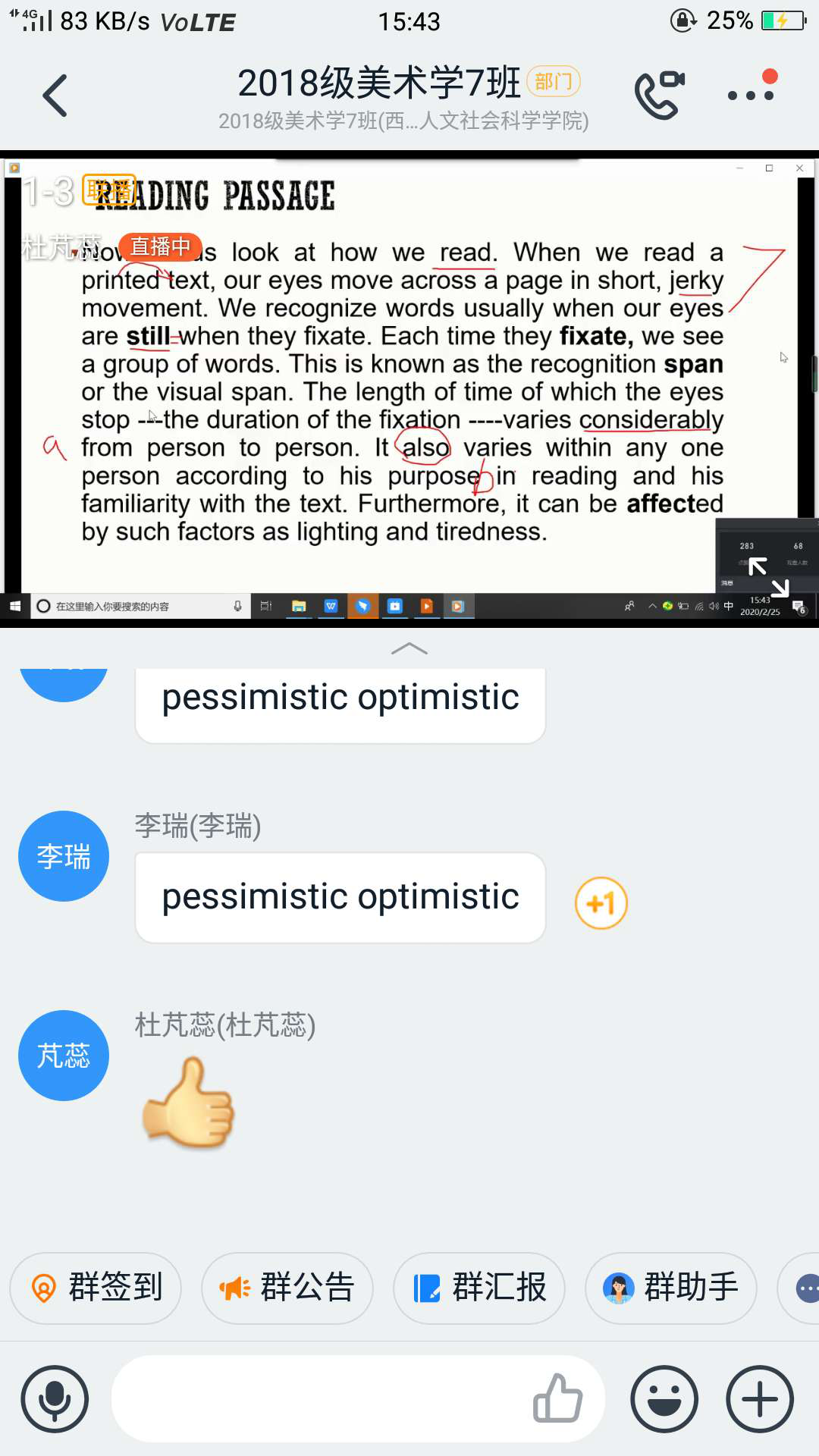 美术学2018级7班正在进行大学英语线上学习