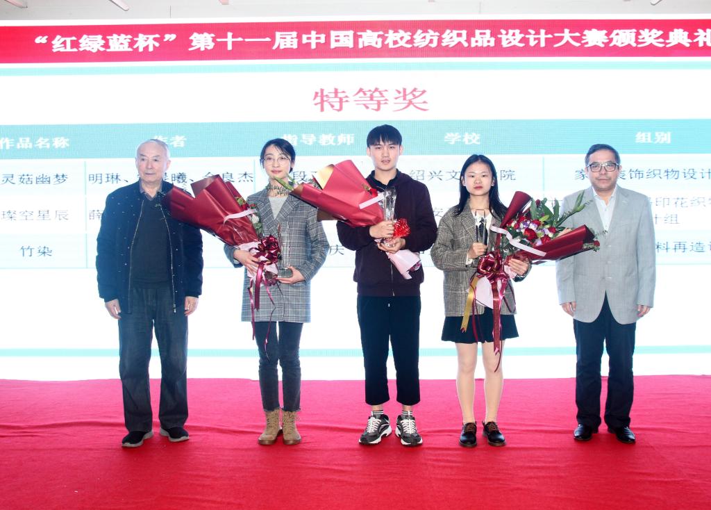 2019年11月16日上午,第十一届“红绿蓝“杯中国高校纺织品设计大赛颁奖典礼在浙江省柯桥区长发商务中心时尚发布厅隆重举行。中国工程院院士蒋士成、中国纺织服装教育学会会长倪阳生以及多位同行专家,高校领导和来自全国30多所院校的获奖师生代表出席了本次颁奖大会,服装黑料网