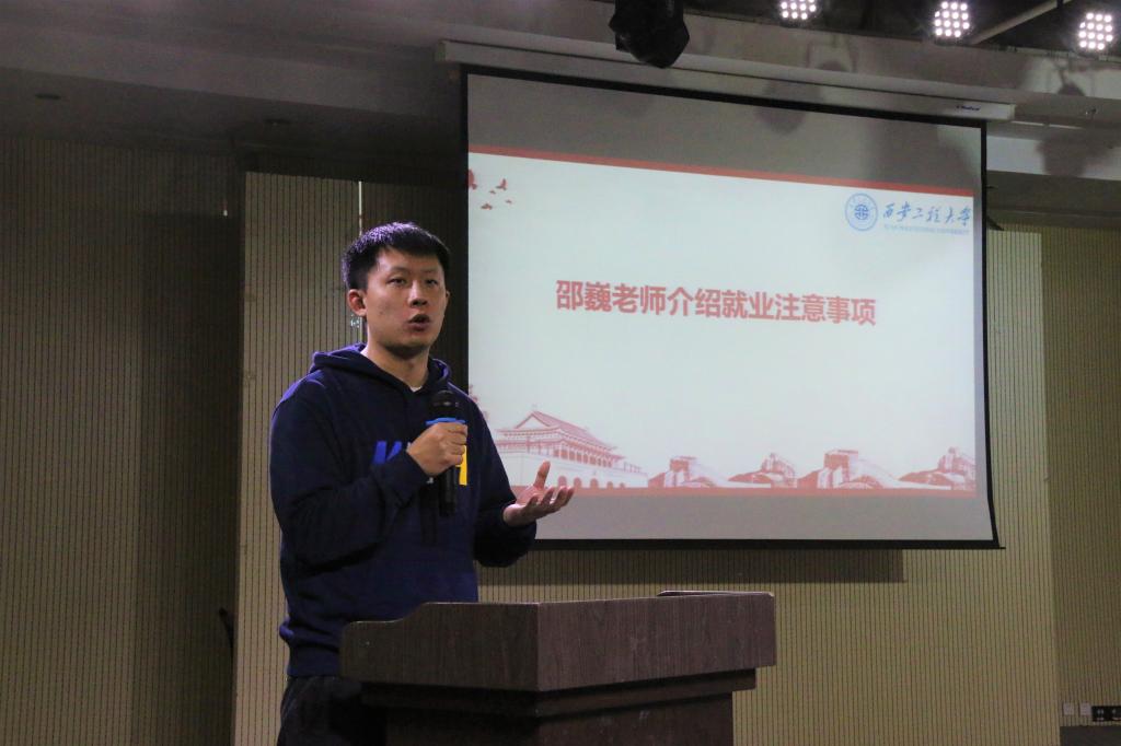 党委副书记张骥从为什么要就业、如何实现又快又好的就业以及就业中经常发生的问题进行了深入浅出的介绍。他勉励2020届毕业生脚踏实地、努力拼搏,用奋斗的姿态去努力实现人生价值,担负起应担负的历史使命。