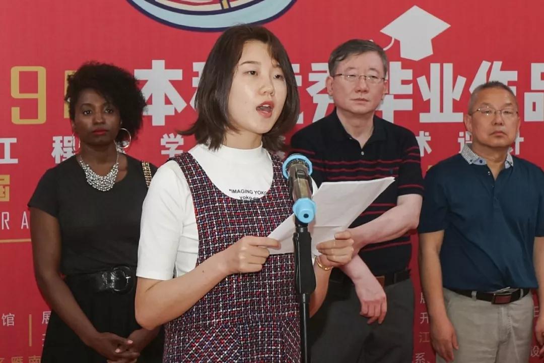 学生代表刘颖先后在开幕式上致辞,并纷纷预祝本次毕业生作品展取得圆满成功。
