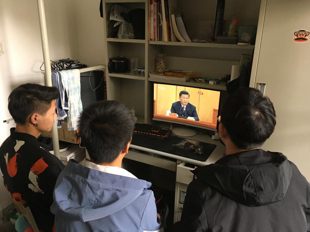 部分同学在宿舍观看大会直播