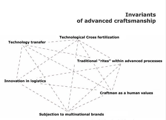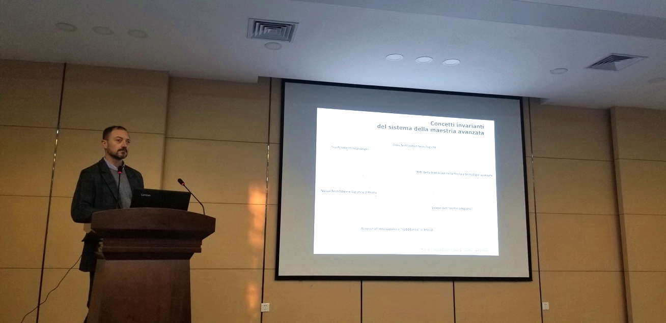 此次讲座Gabriele Goretti 博士主要介绍了意大利制造的发展历史与现状,并带来了参与、观察、深入调查意大利手工制造作坊后的影像资料,与大家共同了解意大利制造的技术特点与设计理念。Gabriele Goretti 博⼠认为,意大利手工业技术历史悠久,深受中世纪艺术的影响,具有地域集群的特点,且多以小作坊的形式存在,但这些小作坊却具有世界性的设计制造理念,因此意大利制造才会闻名全球。在谈到现代工业的威胁和手工业的前景时,Gabriele Goretti 博⼠指出现代工业将会融合手工艺而不是代替,工匠们会利用一些现代机器作为辅助,但核心工艺依然是机器无法取代的。