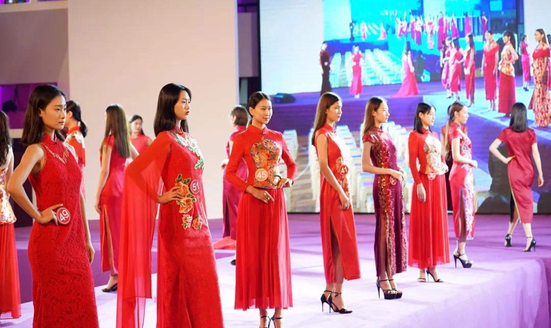 (图中 45 号选手 旗袍展示环节)