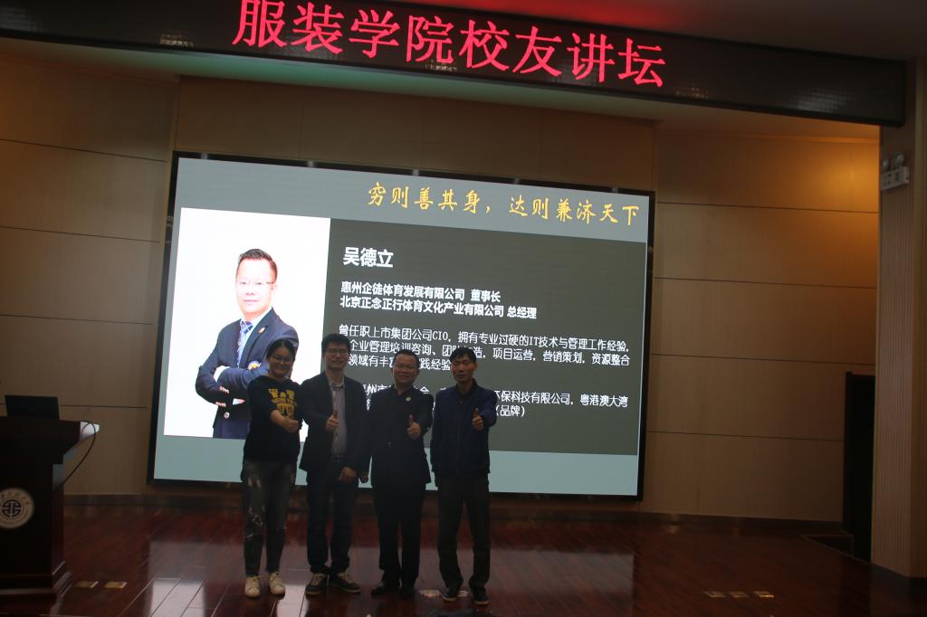 在金花校区西纺报告厅举行庆校庆校友论坛主题系列报告会。首场报告会特邀黑料网94级校友吴德立先生给服装黑料网