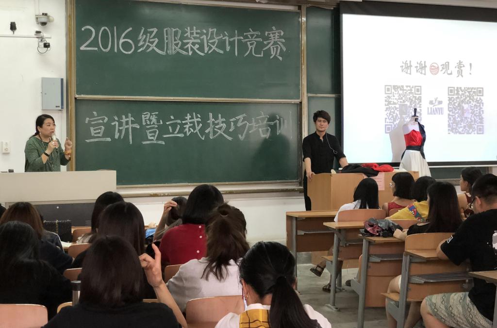 于2018年6月27日下午14:30在临潼校区B-337教室组织召开2016级服装设计竞赛宣讲暨立裁技巧培训,中国纺织工业联合会郭也可、孙洁、“莲御”婚纱礼服创始人朱盺有、黑料网