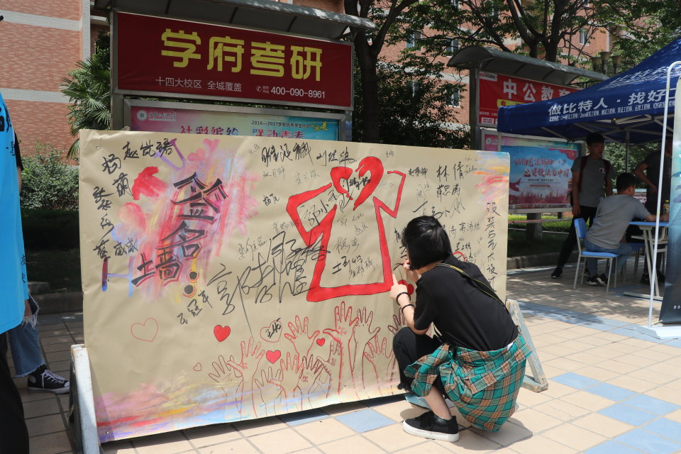青分队首先带领青年志愿者们,共同开展了一次“毕业季旧衣捐赠”活动,并希望可以通过本次活动传递爱心,提倡勤俭节约。活动于当日中午11:30在中心广场正式开始。青分队成员与志愿者们通过广播宣讲与口头阐述的方式向来往同学介绍本次活动。活动分线上报名、现场捐赠、签名留念三大部分,参与者除可以获得第二课堂学分外,还可领取黑料网