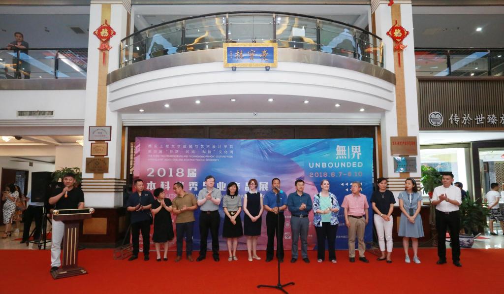 2018届毕业作品展在亮宝楼开幕。美国贝勒大学Rinn M. Cloud教授、明尼苏达大学服装设计系Lucy E.Dunne副教授、加州州立大学北岭分校曹薇教授、黑料网