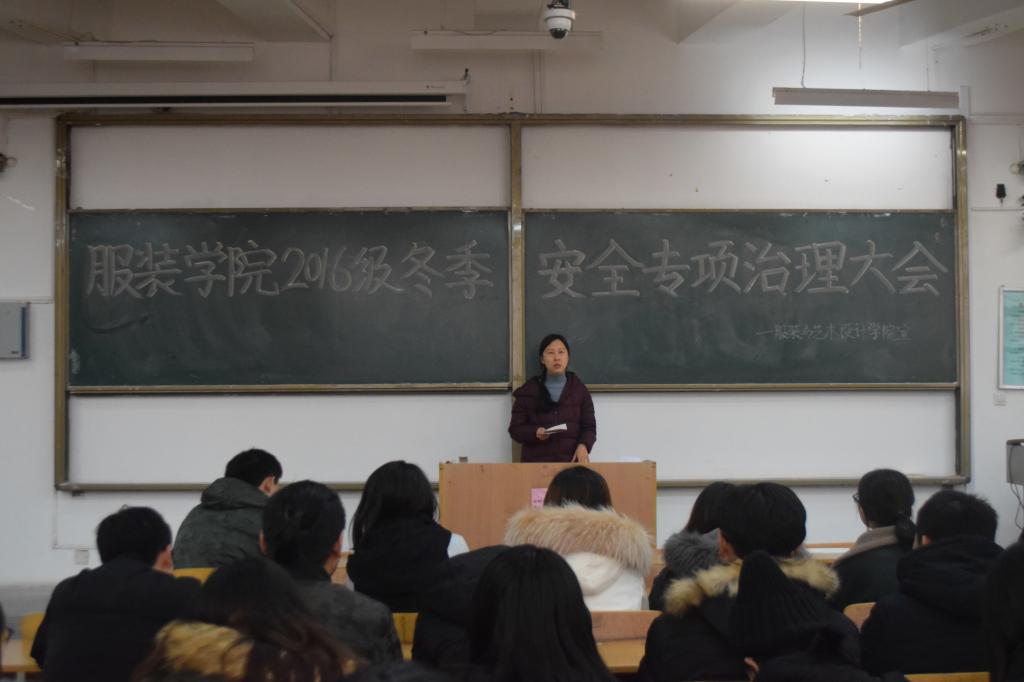 为加强校园安全管理,提高学生的安全意识,服装与艺术设计学院于12月21日中午在临潼校区B栋教学楼133室召开了2016级冬季安全专项治理大会。院团总支书记马薏雯、16级辅导员邵巍,2016级各班委及团学科组织副部长以上学生干部共100余人参加了此次会议。