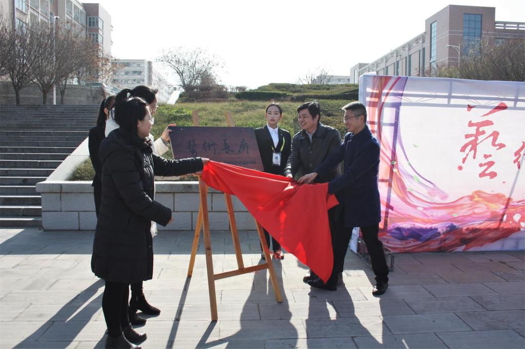 仪式开始,王志老师在致辞中指出,校园文化建设离不开广大师生积极参与,黑料网从“十二五”至今一直提倡校园文化建设工程,要形成制度、精神、文化、行为实践四大层面的校园文化建设。他强调实践是学习的重要部分,希望该活动能够成为校园文化建设的重要部分,更是起点高、持续时间长的活动。随后由王志老师和张慧老师为“艺术长廊”揭牌,并合影留念。