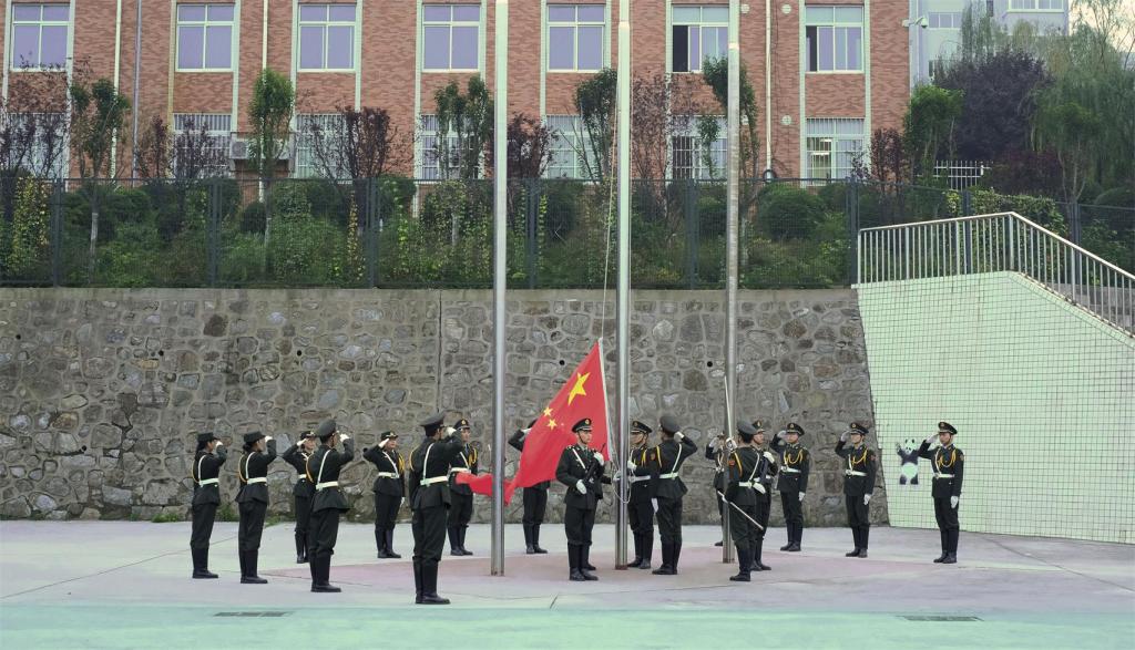 于10月23日早上7:00在临潼校区东体育场举行了2017-2018学年度第一次升旗仪式。参加此次仪式的有2016、2017级全体学生。