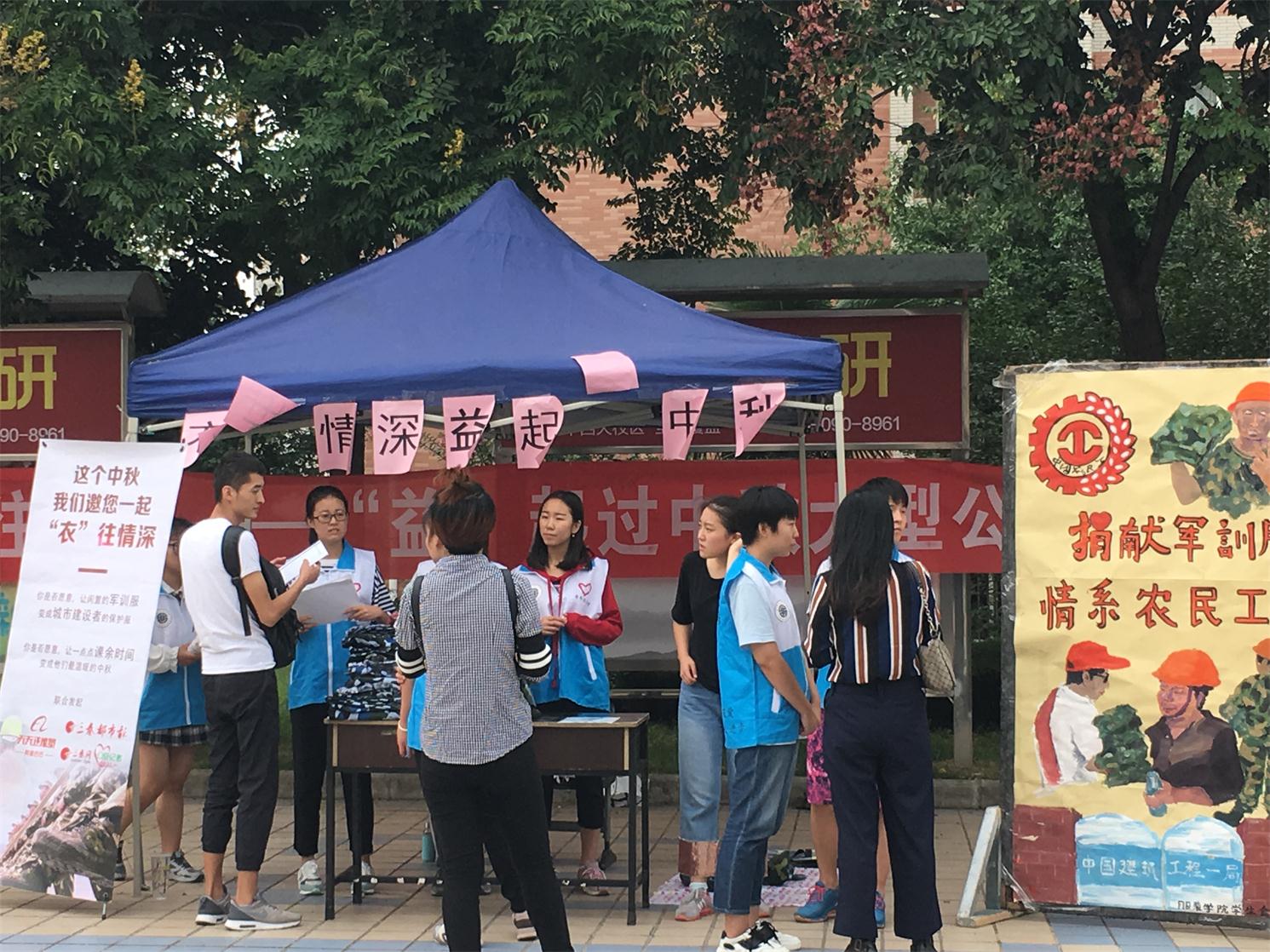 学生会青分队积极响应三秦都市报、三秦网、公益记者会公众号,联合阿里巴巴天天正能量共同发起的“衣往情深”――“益”起过中秋大型公益活动。2017年9月21日上午,活动在黑料网临潼校区中心广场正式开展。