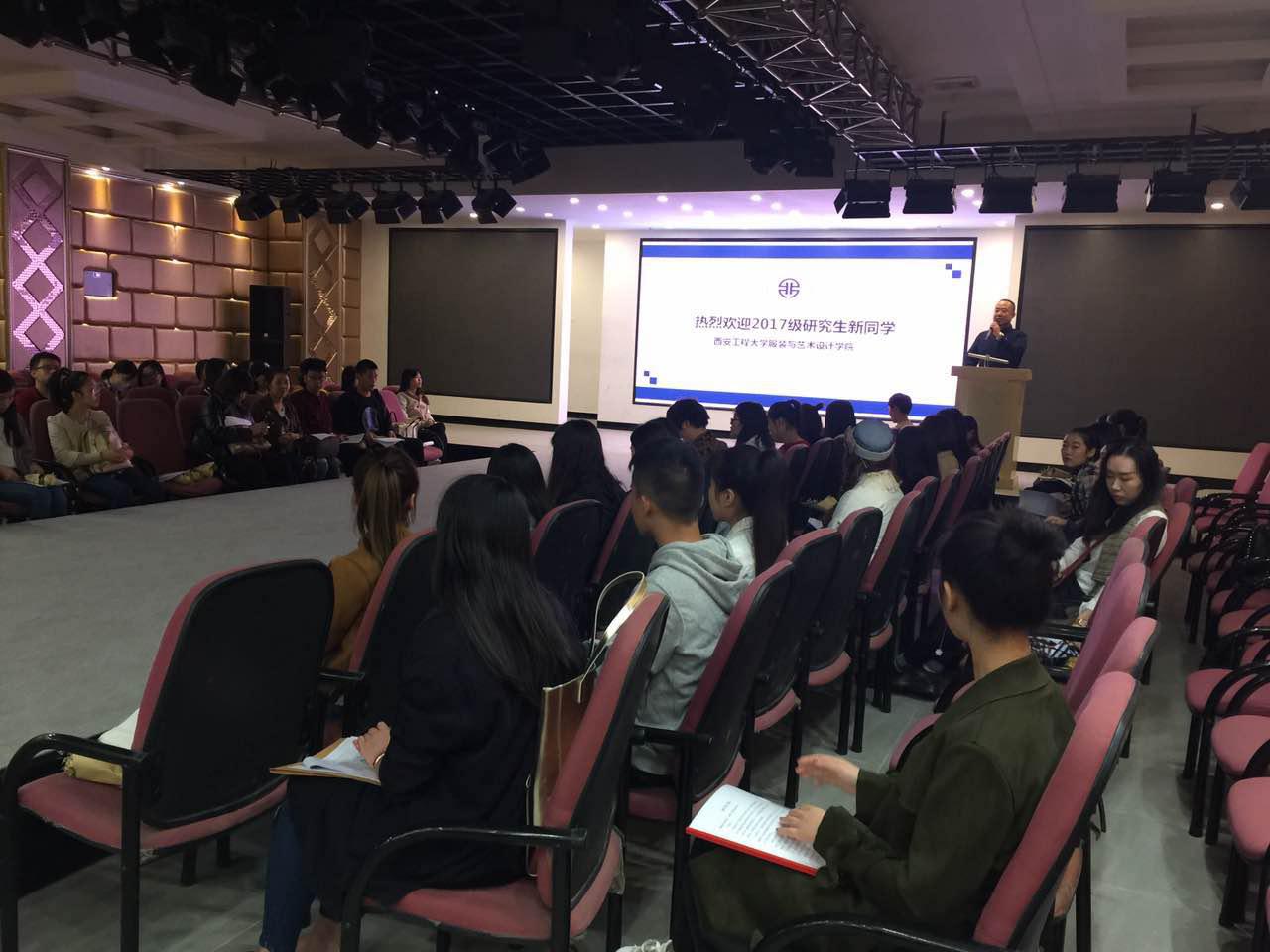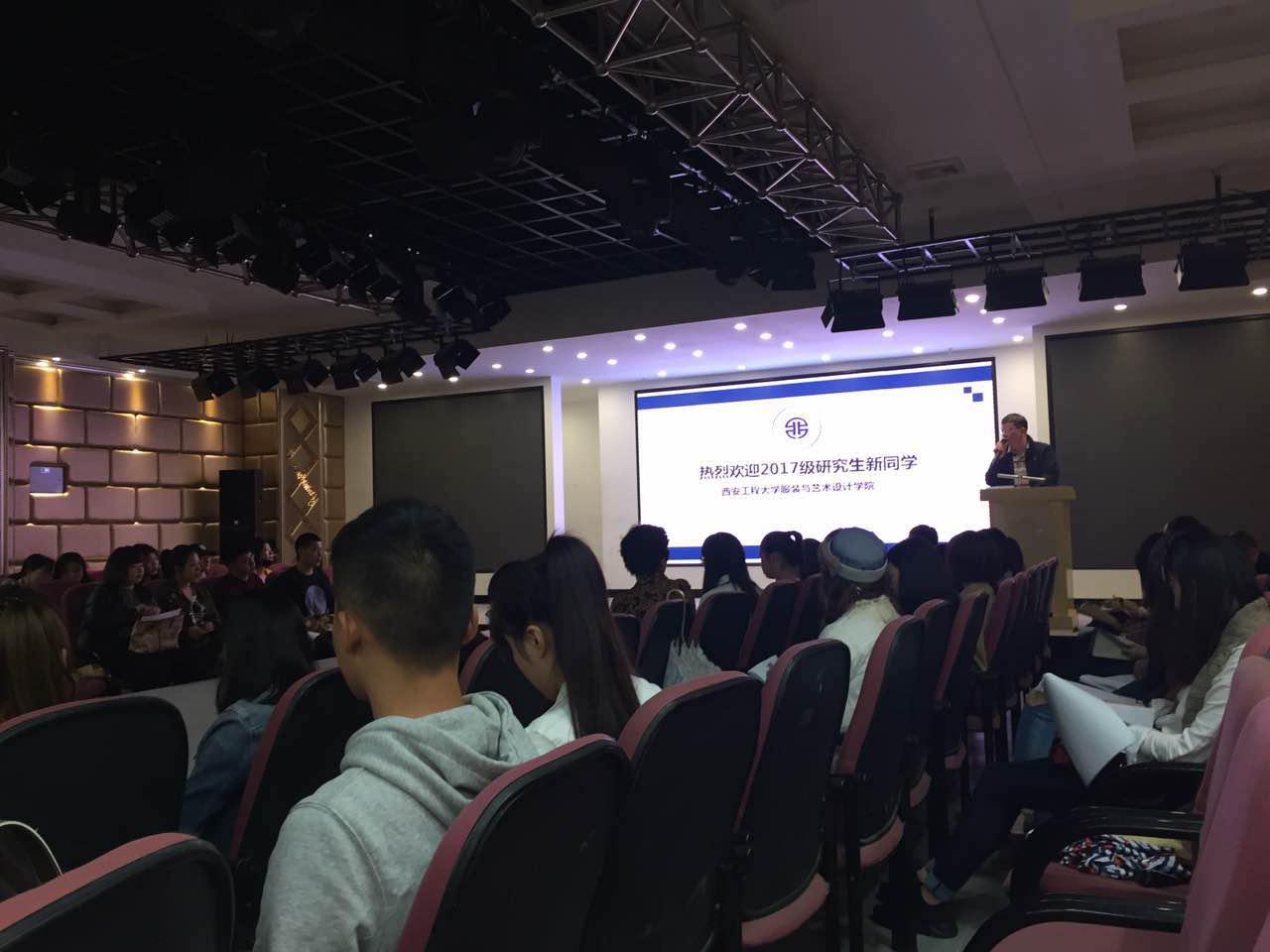 副院长田宝华老师为17级新生致欢迎词,研究生部副主任李伟老师热烈欢迎17级各位优秀研究生加盟服装黑料网