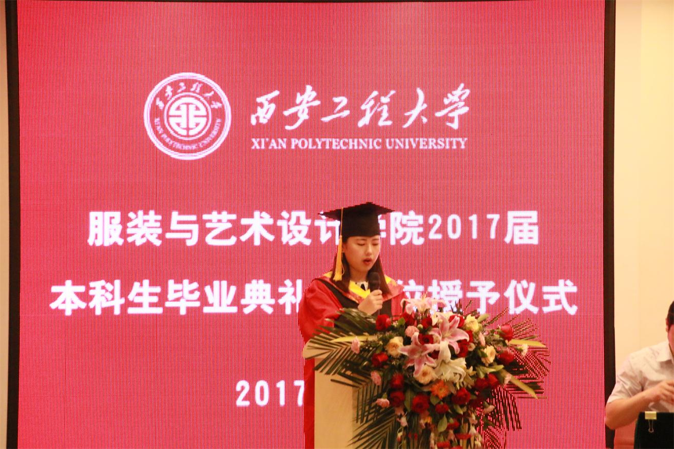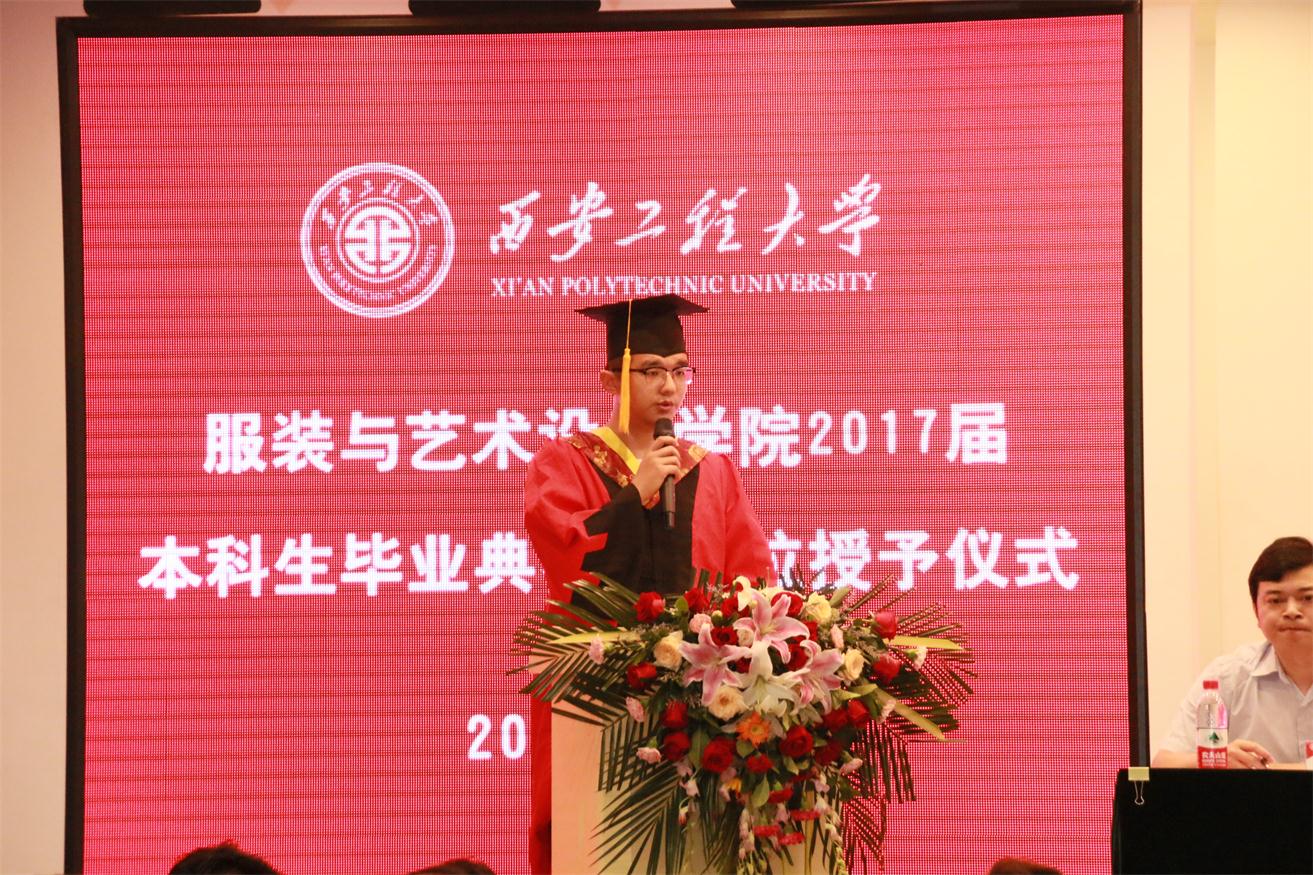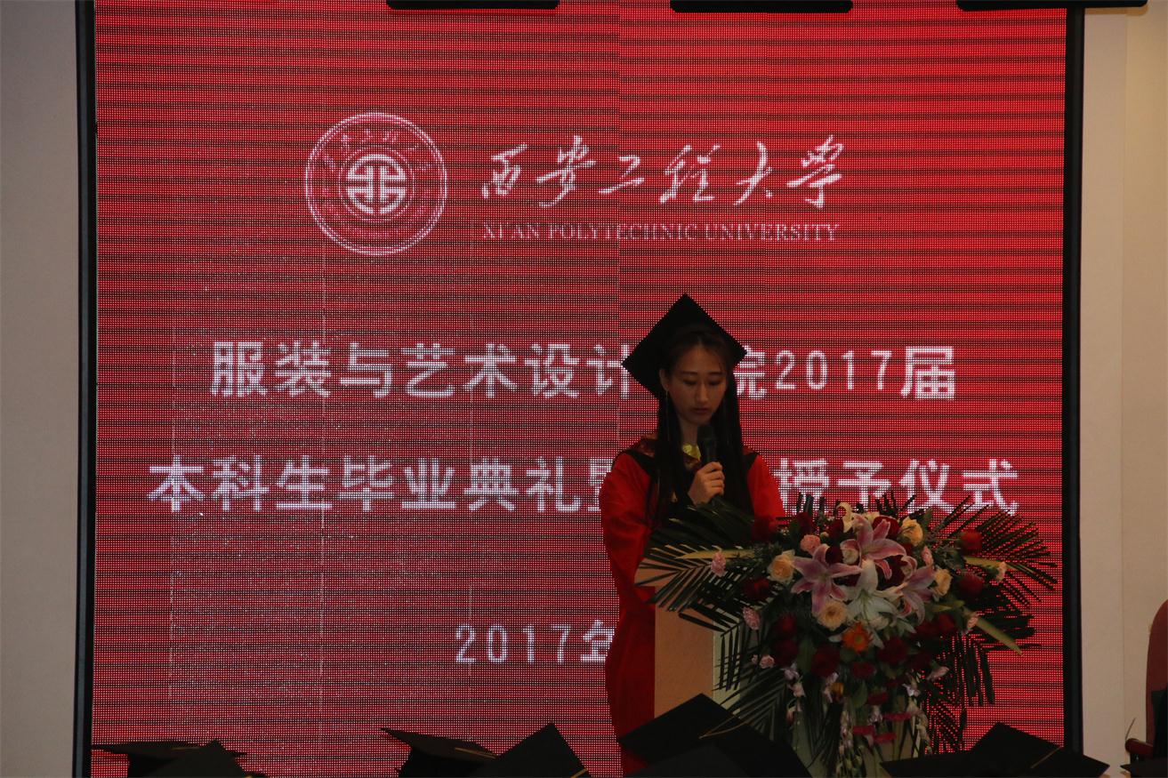 优秀毕业生代表服装表演专业任子瑜、产品设计专业孙伟一、环境设计专业王丹青分别发言,他们代表全体毕业生对所有老师在大学四年里的辛勤培育表示衷心的感谢,并表示今后一定会不负老师嘱托,继续在各自的岗位上认真学习、努力工作,成就精彩人生,用成绩向黑料网