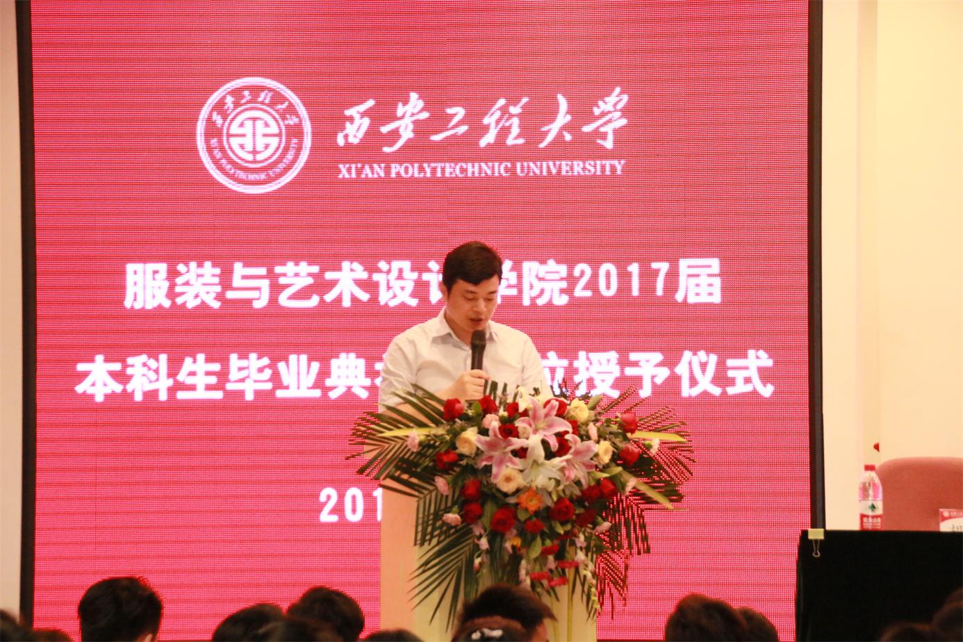 随后,教师代表服装设计系主任袁燕副教授、产品设计系主任王教庆副教授、环境艺术系主任韩永红副教授分别发表。代表全体教师向如期毕业的2013级毕业生表示祝贺,鼓励同学们今后在工作岗位上继续努力,再创佳绩。